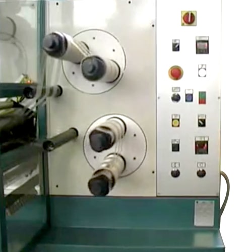 Полуавтоматическая машина для перемотки/нарезки ленты. Является дополнительным аксессуаром для печатающей флексографической машины.